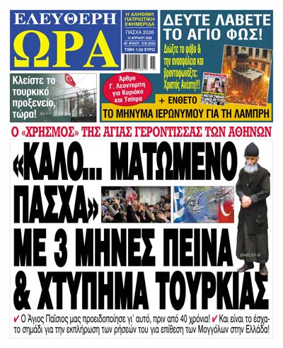 Η συντακτική ομάδα του Ελεύθερου Κόσμου και της Ελεύθερης Ελληνικής Τηλεόρασης εύχεται σε όλους τους Έλληνες καλή Ανάσταση και ευλογημένη Λαμπρή.Είθε το Άγιο Φως να φωτίσει τις ψυχές μας και να σημάνει την αναγέννηση της Πατρίδας μας, που δοκιμάζεται αλλά δεν λυγίζει.