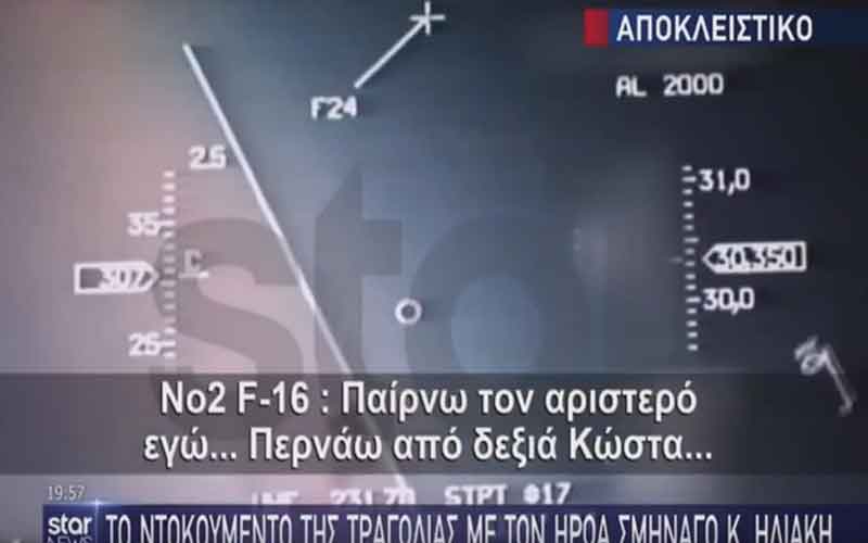 Ένα βίντεο-ντοκουμέντο που δείχνει τη στιγμή που το τουρκικό F-16 πέφτει πάνω στο μαχητικό του ήρωα σμηναγού Κωνσταντίνου Ηλιάκη, πάνω από το Αιγαίο Πέλαγος, στις 23 Μαΐου 2006, αποκάλυψε σήμερα ο τηλεοπτικός σταθμός Star στο κεντρικό δελτίο ειδήσεων με τη Μάρα Ζαχαρέα.