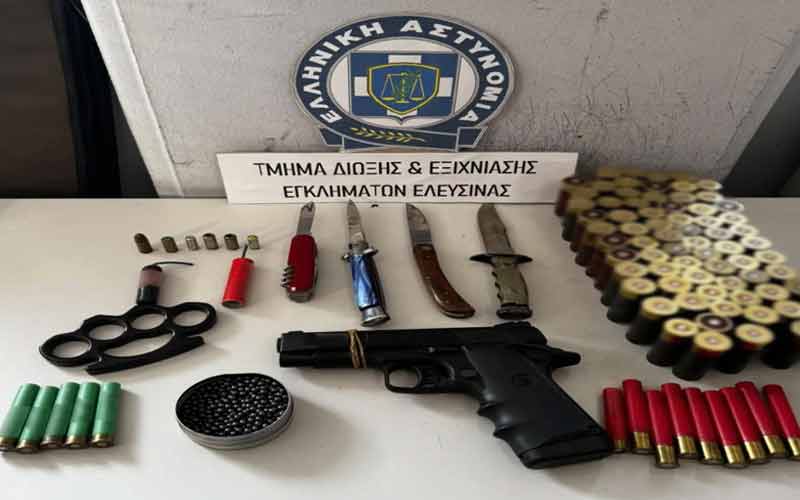 Αμέσως μετά την καταγγελία του περιστατικού, οι αστυνομικοί του Τμήματος Δίωξης και Εξιχνίασης Εγκλημάτων Ελευσίνας άρχισαν τις έρευνες και ταυτοποίησαν τον 17χρονο. Στη συνέχεια, πραγματοποίησαν επιχείρηση στο σπίτι του, όπου βρέθηκαν και κατασχέθηκαν:
