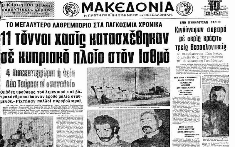 Ήταν 7 Ιανουαρίου του 1977 όταν το καράβι «Γκλόρια», που κουβαλούσε περίπου 11 τόνους χασίς, θα έπεφτε στα χέρια του λιμενικού στην Κορινθία και η αξίας 4 δισ. δραχμών, κατεργασμένη κάνναβη θα κατάσχονταν από τις ελληνικές αρχές.