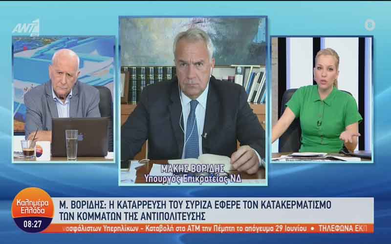 Αινιγματικός εμφανίστηκε ο Μάκης Βορίδης όταν του ζητήθηκε από τον δημοσιογράφο να κληθείς να σχολιάσει το γεγονός πως παρά τους κυβερνητικούς χειρισμούς (τους δικούς του κυρίως θα λέγαμε) για να αποτραπεί η συμμετοχή του Ηλία Κασιδιάρη στις εκλογές, κατάφεραν να συμμετάσχουν οι «Σπαρτιάτες», που είχαν την υποστήριξή του, εκείνος απάντησε: «Σε νομικό επίπεδο θεωρώ δεν υπήρξε καμία αδυναμία. Αντίθετα, εξαντλήθηκε κάθε δυνατότητα που είχε το κοινοβούλιο να παρέμβει σε αυτή τη διαδικασία. Από πλευράς διατάξεων οι νομικές διατυπώσεις και προβλέψεις εξάντλησαν κάθε συνταγματική δυνατότητα» και συνέχισε ισχυριζόμενο πως η διάταξη… δούλεψε: «Ο Κασιδιάρης δεν έχει συμμετάσχει στις εκλογές. Η διάταξη έχει δουλέψει».
