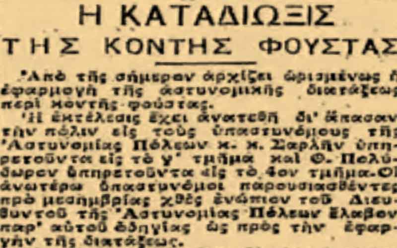 • 1925: Ο Θεόδωρος Πάγκαλος απαγορεύει στις γυναίκες να φορούν κοντές φούστες (άνω των 30 πόντων από το έδαφος) στις εξόδους τους.