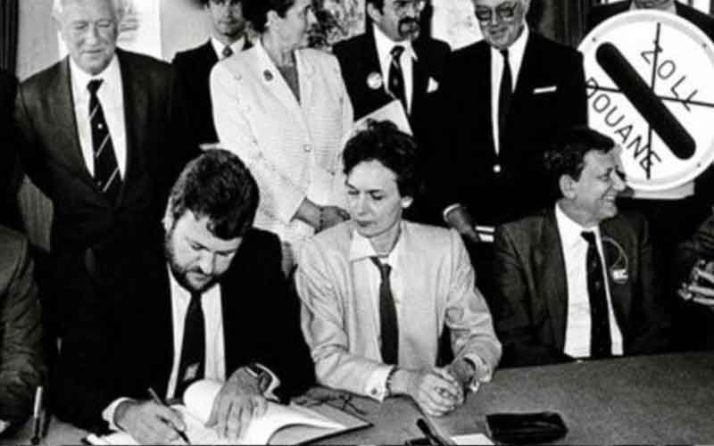 • 1992: Η Ελλάδα υπογράφει στη Μαδρίτη τη «Συνθήκη Σένγκεν». Η Συμφωνία υπεγράφη στις 14 Ιουνίου 1985 στην κωμόπολη Σένγκεν του Λουξεμβούργου ανάμεσα σε πέντε κράτη μέλη των Ευρωπαϊκών Κοινοτήτων (Βέλγιο, Γερμανία, Γαλλία, Λουξεμβούργο και Ολλανδία) και είχε ως στόχο την προοδευτική κατάργηση των ελέγχων στα κοινά σύνορα, την καθιέρωση της ελεύθερης κυκλοφορίας για όλα τα πρόσωπα, υπηκόους των κρατών που υπέγραψαν τη Συμφωνία, καθώς και την αστυνομική και δικαστική συνεργασία.