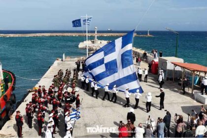 Στο λιμάνι της Χίου κυματίζει και φέτος μια τεράστια ελληνική σημαία ενόψει της αυριανής εθνικής εορτής της 28ης Οκτωβρίου. Η…