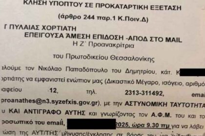 «Καλούμε τον Νικόλαο Παπαδόπουλο του Δημητρίου» (...) «να εμφανιστεί ενώπιον μας (Δικαστικό Μέγαρο, ισόγειο, αριθμός γραφείου 12)». Αυτό το έγγραφο…