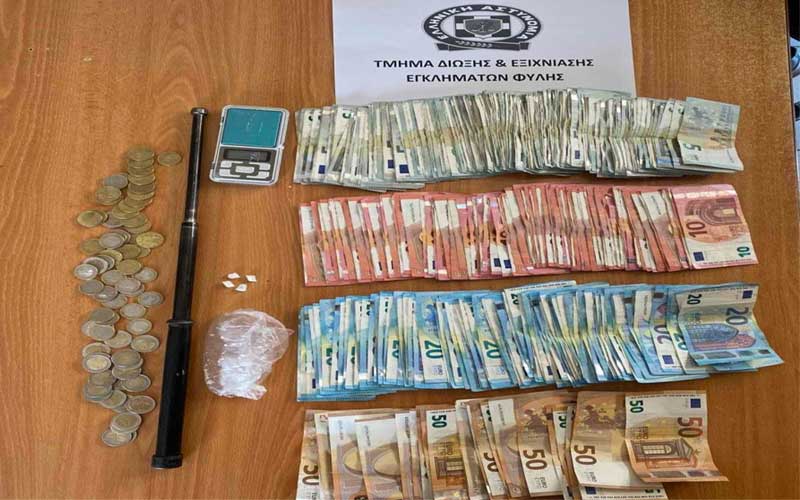 Κατά την έρευνα που ακολούθησε, παρουσία εισαγγελικού λειτουργού, εντοπίστηκαν ζυγαριά ακριβείας, πτυσσόμενο γκλομπ και 5.500 ευρώ σε μετρητά, ενισχύοντας την εικόνα οργανωμένης δράσης.