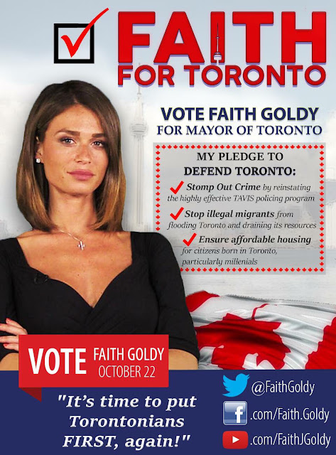 Υποσχέθηκε να «Κάνει τον Καναδά ασφαλή και πάλι!» και να βάλει φρένο στο να μετατραπεί το Τορόντο σε «ασφαλή χώρο για την Σαρία». Όλα αυτά στοίχισαν στην Faith Goldy την καταδίκη της από τους πολιτικούς αντιπάλους της και το να μπει στην μαύρη λίστα από τα μεγάλα μέσα ενημέρωσης. Όντως αξίζει;