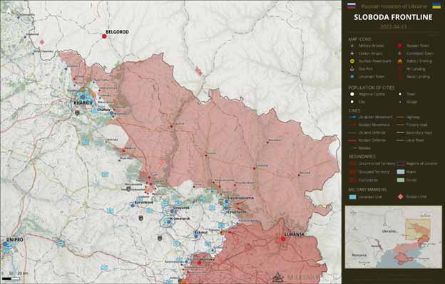 Οι Ρωσικές δυνάμεις έχουν λάβει επιθετική διάταξη στο Donbas και αναμένονται επιχειρήσεις τις προσεχείς μέρες με σκοπό την περικύκλωση και καταστροφή των Ουκρανικών δυνάμεων που είναι ταγμένες εκεί. Η περιοχή αυτή έχει αρκετά πλεονεκτήματα για τη Ρωσική πλευρά.