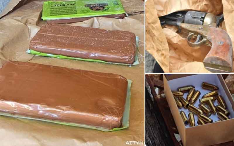 Στις αποθήκες δεν υπήρχαν μόνο ναρκωτικά. Στον ίδιο χώρο εντοπίστηκαν, μεταξύ άλλων, χιλιάδες κροτίδες, πιστόλια, αυτοσχέδιοι εκρηκτικοί μηχανισμοί, φυσίγγια και χρηματικό ποσό €12.765.
