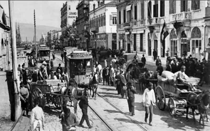 «Τα στενά της σοκάκια, οι φαντασμαγορικοί βερχανέδες της, τα αρχαϊκά της σπίτια, τα καφασωτά παράθυρα, τα αιώνια μπαλκόνια, οι μιναρέδες, τα ψηλά κωδωνοστάσια, οι τρούλοι της, τα σαχνισίδια της μέσα στο τρεμουλιαστό φως των φαναριών της έδιναν στην πόλη μια εντύπωση έντονα ειδυλλιακή, κάποιο μυστικισμό…»(2) πάντοτε. Μέσα όμως στη νύχτα της παραμονής της Πρωτοχρονιάς του ’22 οι μιναρέδες και τα κωδωνοστάσια έμοιαζαν να αποκρεμιούνται σ’ ένα αγκάλιασμα ερωτικό ή θανατηφόρο – δεν ήξερες!