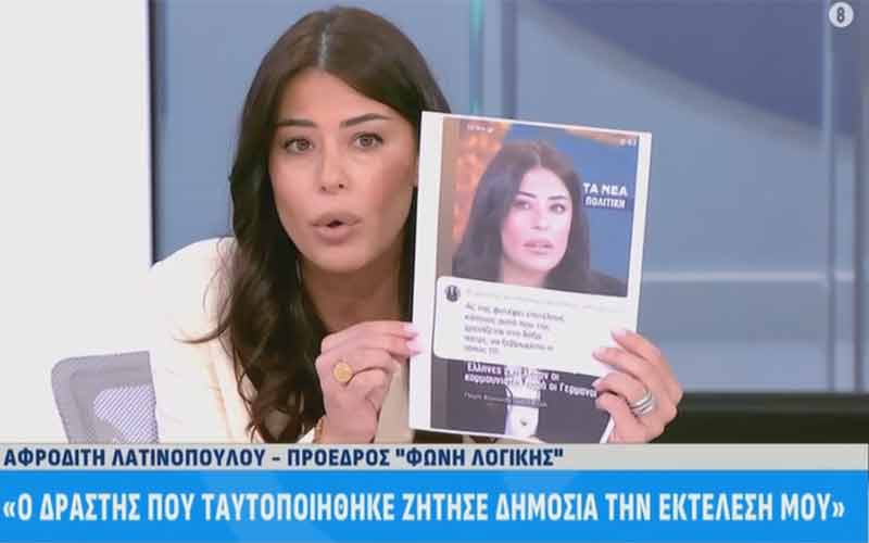 Για τις απειλές που δέχθηκε από τον 43χρονο ο οποίος ταυτοποιήθηκε από την ΕΛΑΣ, μίλησε το πρωί της Παρασκευής η Αφροδίτη Λατινοπουλου.
