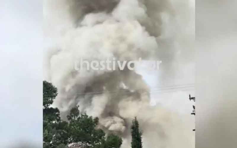 Η φωτιά εκδηλώθηκε σε υπαίθριο χώρο της επιχείρησης της Θεσσαλονίκης και καίγονται υλικά ανακύκλωσης και απορρίμματα.