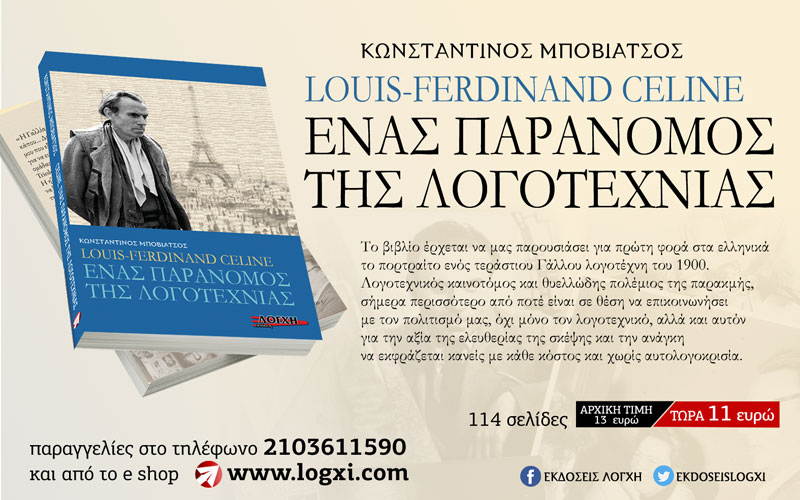 Το βιβλίο «Louis Ferdinad Celine, ένας παράνομος της λογοτεχνίας» του Κωνσταντίνου Μποβιάτσου, έρχεται να μας παρουσιάσει για πρώτη φορά στα ελληνικά το πορτραίτο ενός τεράστιου Γάλλου λογοτέχνη του 1900. Έρχεται να παρουσιάσει για πρώτη φορά στα ελληνικά ένα περίγραμμα της διάνοιας αυτής που αρκετοί προσπάθησαν να αποδομήσουν αλλά δεν τα κατάφεραν. Η μισανθρωπία του Céline είναι εμφανής στα μυθιστορήματά του. Είναι ένας γιατρός-συγγραφέας ο Céline, ο οποίος κυρίως λόγω των ιδεών του και το ότι βομβαρδίστηκε από ανελέητες καταδίκες, καταλήγει να τιμωρείται και ως γιατρός και ως συγγραφέας. Μαρτυρώντας τη σκληρή εμπειρία της ζωής του, ο Δρ. Destouches – το πραγματικό του όνομα- περιφρονεί την ανθρωπότητα αλλά ακριβώς γι’ αυτόν τον λόγο φαίνεται και καθήκον του να την φροντίσει.