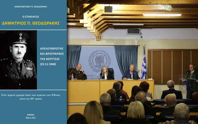 Το Σάββατο 26 Νοεμβρίου 2022 στην αίθουσα του Δημοτικού Συμβουλίου Μεσολογγίου πραγματοποιήθηκε η παρουσίαση του βιβλίου «Ο Στρατηγός Δημήτριος Π. Θεοδωράκης, Απελευθερωτής και Φρούραρχος της Κορυτσάς (22-11-1940)» του Κωνσταντίνου Π. Θεοδωράκη, εκπροσώπου των απογόνων του Στρατηγού.