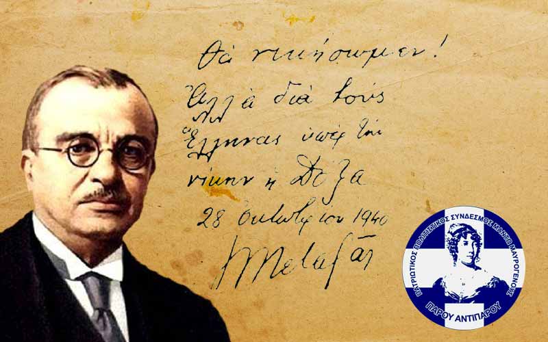 Ο Πατριωτικός Πολιτιστικός Σύνδεσμος Μαντώ Μαυρογένους Πάρου Αντιπάρου για την 28η Οκτωβρίου