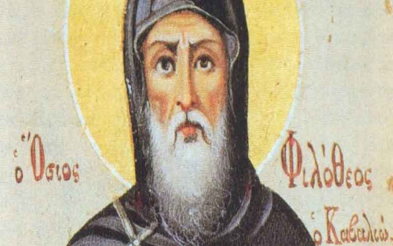 Ο Όσιος Φιλόθεος γεννήθηκε το 1526 μ.Χ. στη Χρυσούπολη της Μακεδονίας (κοντά στην Καβάλα).