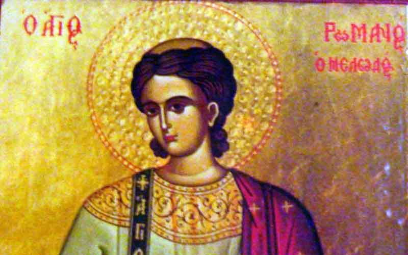 Ο Ρωμανός είχε μέτρια παιδεία και το ποιητικό ταλέντο του ήταν ακόμα άγνωστο. Διεκατέχετο όμως από μία βαθιά πίστη στην σεπτή μνήμη της Παναγίας της Παρθένου και τακτικά παρακολουθούσε στον Ναό της Παναγίας των Βλαχερνών τις κατανυκτικές ολονυκτίες. Σε μία τέτοια, στην γιορτή των Χριστουγέννων, που παραβρέθηκε η ψυχή του γέμισε με κατάνυξη και όταν γύρισε στο κελί του είδε όνειρο την Παναγία να του προσφέρει ένα βιβλίο και να του λέει να το καταφάει. Ο Ρωμανός από την επίδραση τού ονείρου συνέθεσε για την γέννηση τού Χριστού το τροπάριο «Ἡ Παρθένος σήμερον τὸν ὑπερούσιον τίκτει καὶ ἡ γῆ τὸ σπήλαιον τῷ ἀπροσίτω προσάγει..». Από την στιγμή αυτή η ποιητική επιφοίτηση του οσίου Ρωμανού έμεινε άσβεστη και αναδείχτηκε ο εξωχότερος και μεγαλύτερος μελωδός της Εκκλησίας μας.
