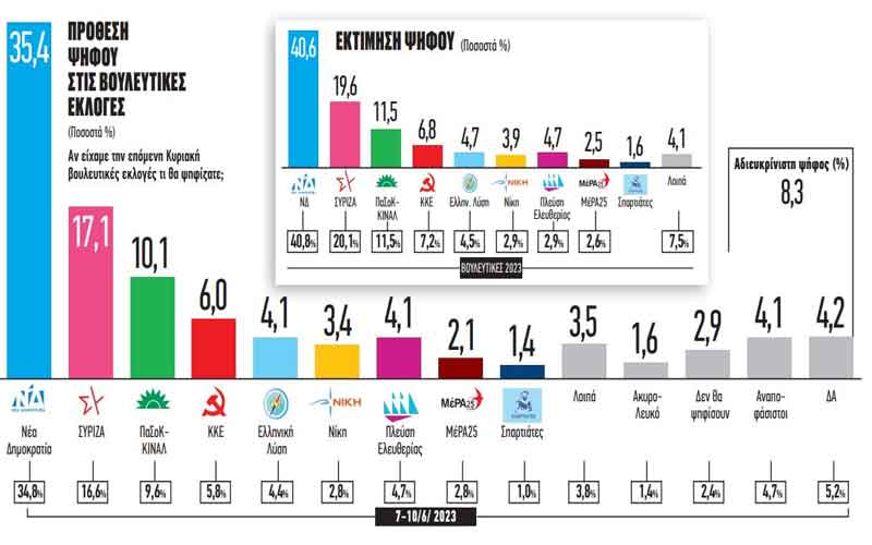 Αναφορικά με την αδιευκρίνιστη ψήφο, αυτή βρίσκεται στο 8,3%.