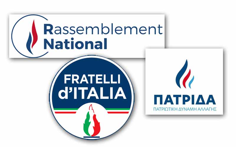 Τέλος το λογότυπο του κόμματος μοιάζει… λίγο με αυτό του Εθνικού Συναγερμού (το κόμμα που διαδέχτηκε το Εθνικό Μέτωπο) της Λεπέν αλλά και των Fratelli d’ Italia της Μελόνι, που είναι κατά κάποιον τρόπο η εξέλιξη του MSI.