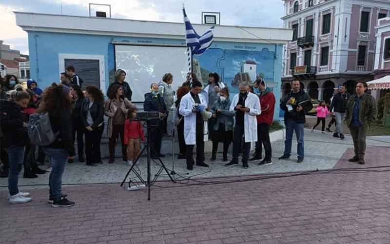 Με κεντρικό σύνθημα «Όσοι είστε μέσα στη Βουλή αρχίστε να ετοιμάζεστε κι εσείς για αναστολή» πορεύτηκαν περισσότεροι από 100 κάτοικοι της Μυτιλήνης που διαμαρτύρονται για τους υποχρεωτικούς εμβολιασμούς, με επικεφαλής τους γνωστούς γιατρούς του Νοσοκομείου Μυτιλήνης που τέθηκαν σε αναστολή ως ανεμβολίαστοι. Το νευροχειρούργο Μπαιραμίδη και τον ογκολόγο Νικολαίδη.