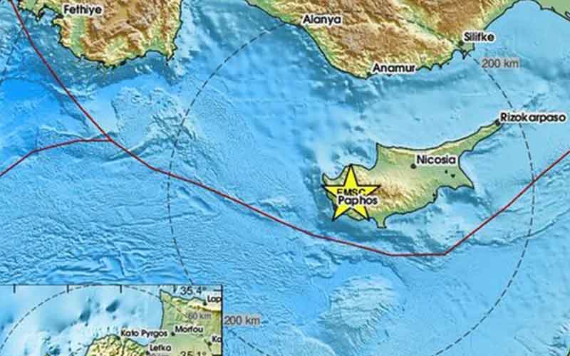 Σε ανακοίνωση που εξέδωσε το Τμήμα Γεωλογικής Επισκόπησης, αναφέρεται ότι χθες, Τετάρτη, στις 16:23 (τοπική ώρα) καταγράφηκε από το σεισμολογικό δίκτυο του Τμήματος ισχυρός σεισμός μεγέθους 5,2 βαθμών στην κλίμακα Ρίχτερ. «Ο σεισμός είχε επίκεντρο στην περιοχή Αγίας Μαρίνας Κελοκεδάρων, 20 χιλιόμετρα βορειοανατολικά της πόλης της Πάφου και εστιακό βάθος 25 χιλιόμετρα» προστίθεται.