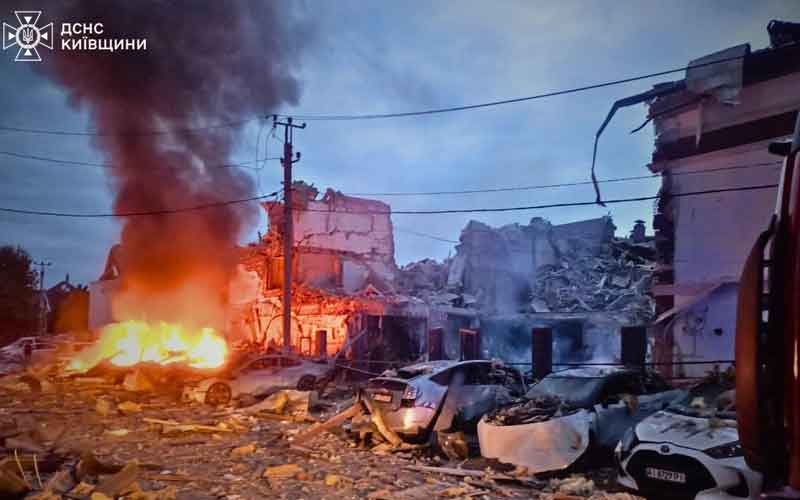 Η Ρωσία εκτόξευσε 595 μη επανδρωμένα αεροσκάφη (drones) και 48 πυραύλους στη διάρκεια της νύχτας, σύμφωνα με τον ουκρανικό στρατό, κατά του Κιέβου και άλλων περιοχών της Ουκρανίας, με αποτέλεσμα τουλάχιστον τέσσερις άνθρωποι να χάσουν τη ζωή τους και δεκάδες να τραυματιστούν, σε από τις επιθέσεις με τη μεγαλύτερη διάρκεια από την έναρξη του πολέμου.