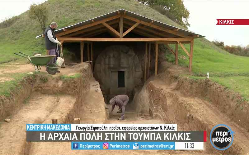 Σύμφωνα με την ΕΡΤ, στο νεκροταφείο αυτής της αρχαίας πόλεως είχαν τοποθετηθεί τα μέλη της αριστοκρατικής τάξεως, οι εταίροι, δηλαδή οι φίλοι του Μακεδόνα βασιλιά, εξηγεί η Γεωργία Στρατούλη, προϊσταμένη της εταιρείας αρχαιοτήτων Ν. Κιλκίς. Πρόκειται για ένα τύμβο, τέλειας κατασκευής, που κτίστηκε μέσα σε όρυγμα, και συγκεκριμένα σε μαργαϊκό ασβεστόλιθο, που έχει λευκό χρώμα και δίνει στο πέτρωμα κρυσταλλικό χαρακτήρα. «Ένας δρόμος μήκους περίπου 14 μέτρων οδηγεί στο ταφικό μνημείο, που αναδεικνύεται σταδιακά από την αρχαιολογική σκαπάνη. Καταλήγει σε έναν υπόγειο μονοθάλαμο τάφο, που κλείνει με διπλή μαρμάρινη θύρα και εντός του οποίου υπάρχει μια μαρμάρινη ταφική κλίνη». Μετά την ολοκλήρωση της ή των ταφών το μνημείο σφραγίστηκε με ογκόλιθους, αλλά ατυχώς βρέθηκε συλημένο.