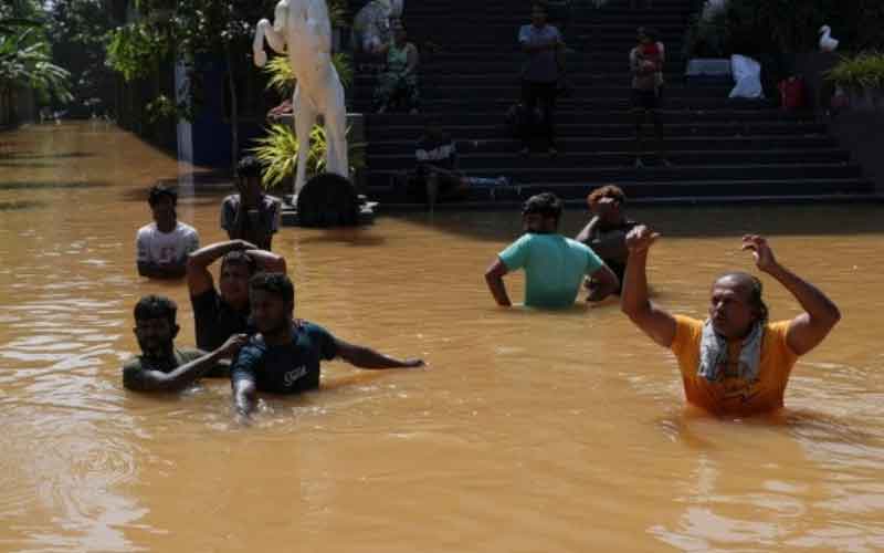 Δεκάδες οικογένειες έχουν εγκλωβιστεί στα σπίτια τους από τις πλημμύρες στην εμπορική πρωτεύουσα Κολόμπο, που είναι μία από περιοχές που επλήγησαν περισσότερο.