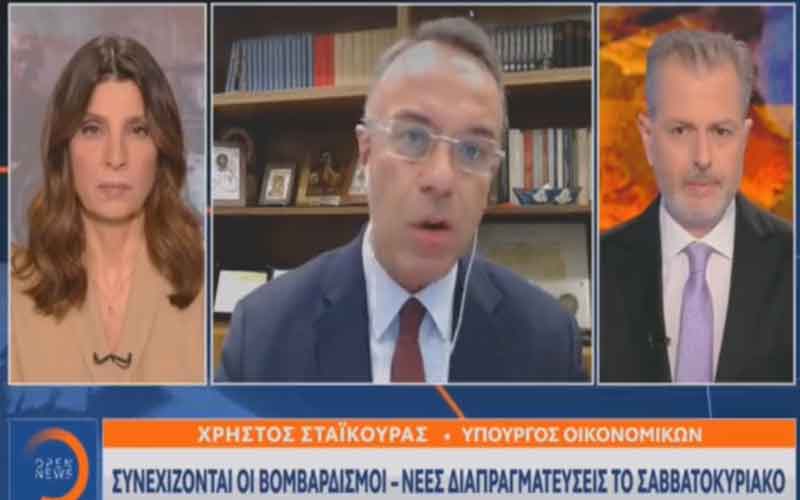 «Ψυχραιμία… είμαστε σε πόλεμο» Ναι, αλλά ο λογαριασμός θα έρθει στο τέλος του μηνός και πρέπει να τον πληρώσουμε», παρενέβη ο παρουσιαστής του δελτίου, με τον Χρήστο Σταίκούρα να συνεχίζει να απαντάει με απόλυτα κυνικό τρόπο