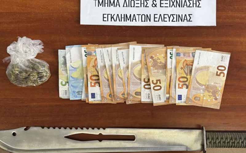 Μια άκρως επικίνδυνη ματσέτα είχαν στην κατοχή τους δύο νεαροί στην Ελευσίνα που συνελήφθησαν από την αστυνομία. Για τον 39χρονο και τον 27χρονο υπήρχαν πληροφορίες ότι διακινούσαν ναρκωτικά στην περιοχή.