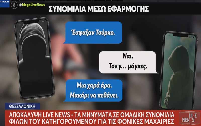 Το MEGA και η εκπομπή “Live news” αποκάλυψαν όσα ειπώθηκαν σε μηνύματα λίγη ώρα μετά τη δολοφονία του Κλεομένη. Ένα άτομο φέρεται να είπε για το θύμα, “μακάρι να πεθάνει”, ενώ προς το τέλος των μηνυμάτων κάποιος άλλος χρήστης προτρέπει άπαντες να αποχωρήσουν από την ομαδική.