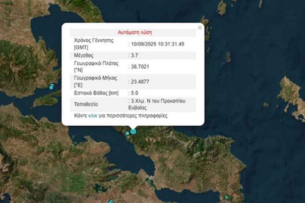 Σεισμός μεγέθους 3,7 βαθμών της κλίμακας Ρίχτερ σημειώθηκε το μεσημέρι της Τετάρτης (10/9), στις 13:31, στην Εύβοια. Σύμφωνα με το…