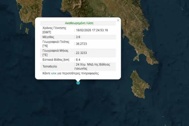 Σεισμός μεγέθους 3,6 βαθμών της κλίμακας Ρίχτερ σημειώθηκε στη Λακωνία αργά το απόγευμα της Τετάρτης (18.08.2026). Στη θάλασσα κοντά στη…