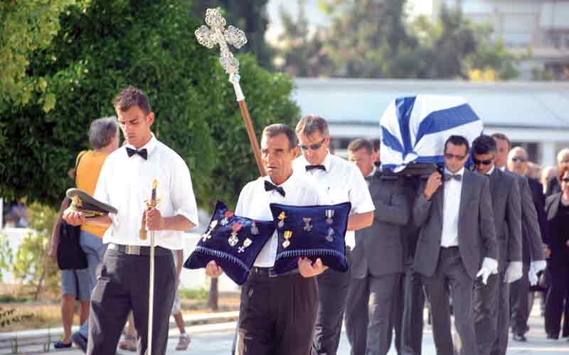 Στις 6.06 το απόγευμα της Τετάρτης 18 Αυγούστου 2010, το τυλιγμένο με την Ελληνική Σημαία φέρετρο κατέβαινε στον τάφο και η Αττική Γή έκλεινε στα σπλάχνα της για πάντα τον θρυλικό «αόρατο δικτάτορα», ενώ οι 200 παρευρισκόμενοι έψαλλαν κατασυγκινημένοι τον Εθνικό μας Ύμνο και του φώναζαν «καλό ταξίδι»….