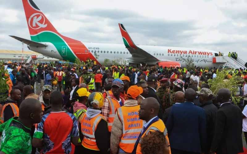 Από το πρωί, μεγάλα πλήθη συνόδευσαν την άφιξη στη χώρα της σορού του «Μπάμπα» (πατέρας), όπως τον αποκαλούσαν. Αφού προσγειώθηκε το αεροσκάφος που μετέφερε το φέρετρο, γύρω στις 9.30 το πρωί, η κενυατική υπηρεσία πολιτικής αεροπορίας αναγκάστηκε να διακόψει προσωρινά τη λειτουργία του αεροδρομίου Τζόμο Κενιάτα «για να αποκαταστήσει την τάξη και την ασφάλεια».