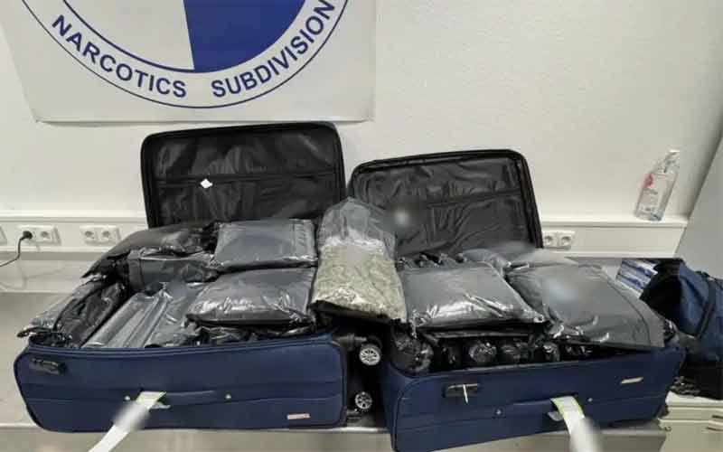 Από τον έλεγχο που πραγματοποιήθηκε στις αποσκευές τους, συνολικά κατελήφθησαν να έχουν αποκρύψει σε νάιλον συσκευασίες εντός των αποσκευών τους, 72 κιλά και 700 γραμμάρια ακατέργαστης κάνναβης υδροπονικής καλλιέργειας (skunk).