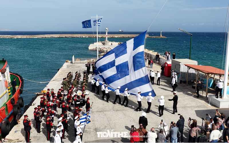 Η έπαρση της σημαίας πραγματοποιήθηκε στο λιμάνι της Χίου στις 12:00 το μεσημέρι της Δευτέρας (27.10.25), παρουσία πλήθους κόσμου και εκπροσώπων των τοπικών Αρχών.
